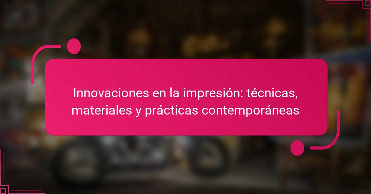 Las innovaciones en la impresión están transformando el paisaje artístico a través de nuevas técnicas, materiales y prácticas contemporáneas. La impresión digital y 3D potencia la creatividad, mientras que las tintas ecológicas promueven la sostenibilidad. Las influencias culturales moldean las expresiones artísticas, fusionando métodos tradicionales con tecnología moderna. Los desafíos como la adaptación a las tendencias digitales y la obtención de materiales sostenibles son críticos para los aspirantes a impresores.