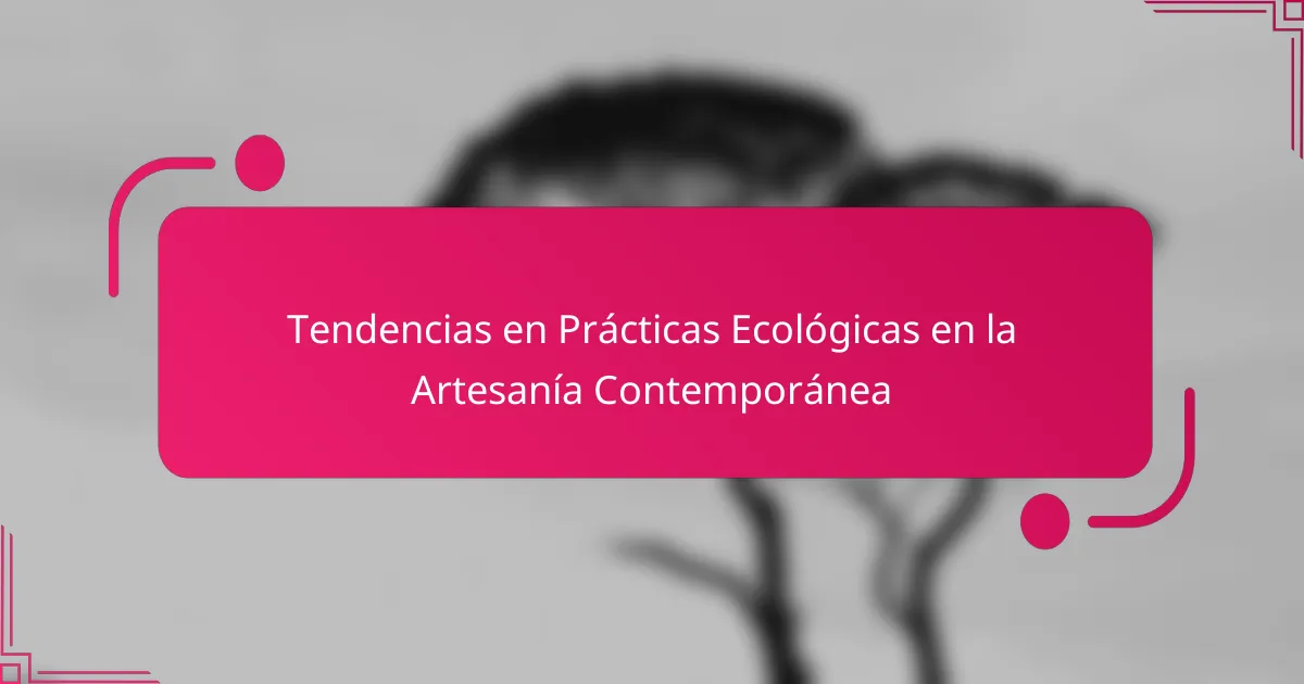 Las prácticas ecológicas en la artesanía contemporánea son esenciales para reducir residuos y minimizar el impacto ambiental. Las tendencias clave incluyen la obtención sostenible, el reciclaje de materiales y la integración de la tecnología para la eficiencia. Los artesanos también se centran en la participación comunitaria a través de talleres y colaboraciones. Estas prácticas no solo mejoran la sostenibilidad, sino que también fomentan las economías locales y promueven el consumo ético.